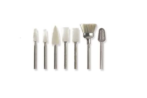 • 7 attachments including 1 diamond tip (item 1799+1706 D): 2 x pointed abrasive tips / 2 x cylindrical abrasive tips / Cleaning & polishing brush / Diamond cutter